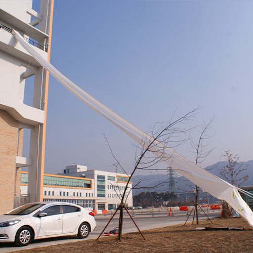 지상에서는 포단이 움지이지 않도록 단단히 고정합니다.