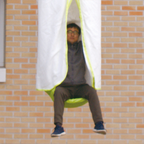 화재 또는 피난상황 발생시 구조대의 케이스를 들어냅니다.